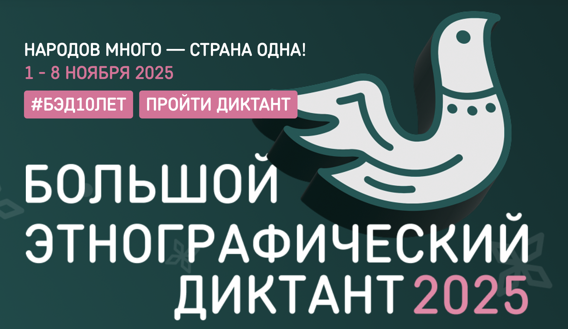 С 1 по 8 ноября 2025 г. во всех субъектах Российской Федерации и зарубежных странах пройдет Юбилейная X Всероссийская просветительская акция «Большой этнографический диктант».