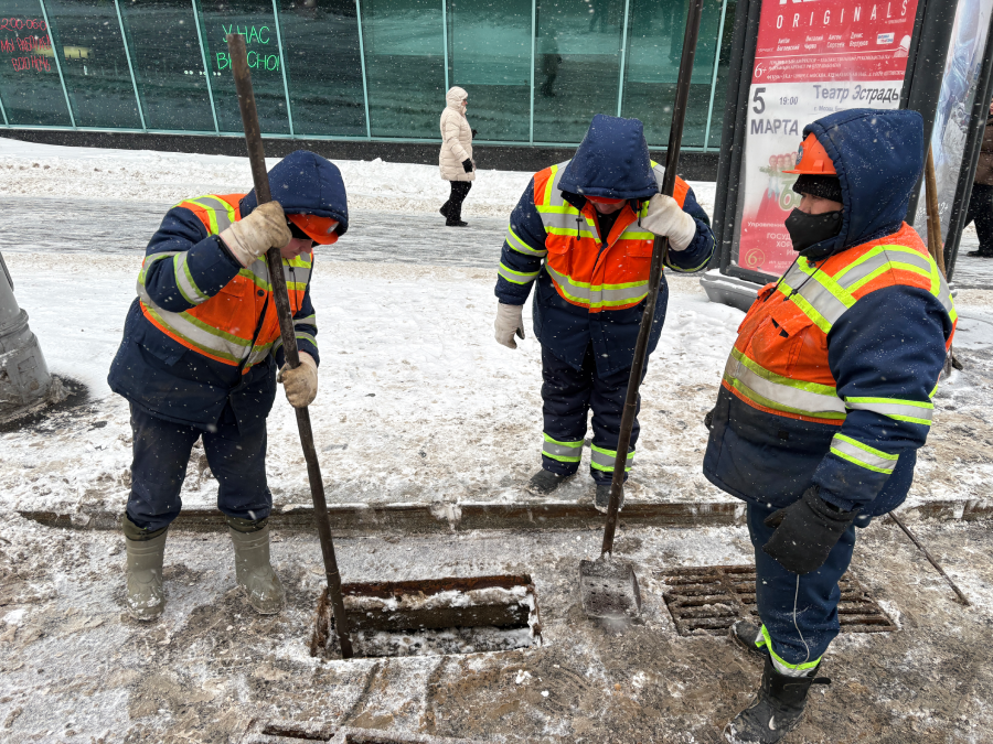 Особое внимание уделяется очистке водосточной инфраструктуры на ключевых магистралях, вблизи пешеходных зон, у остановок городского транспорта.