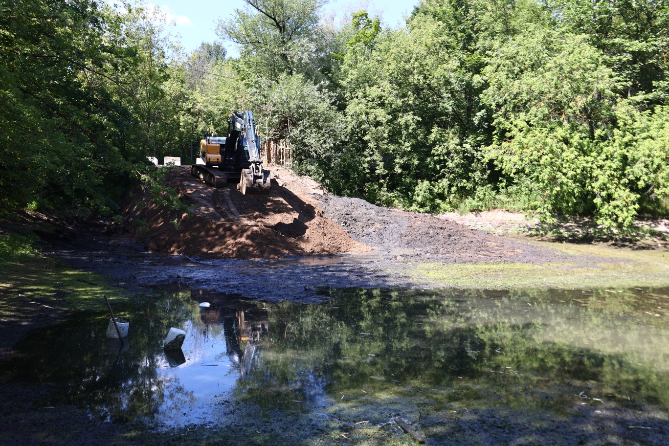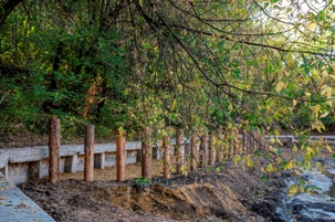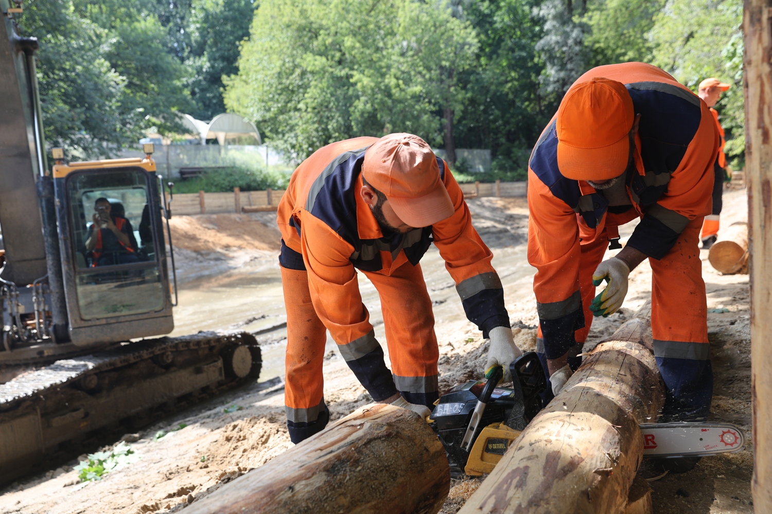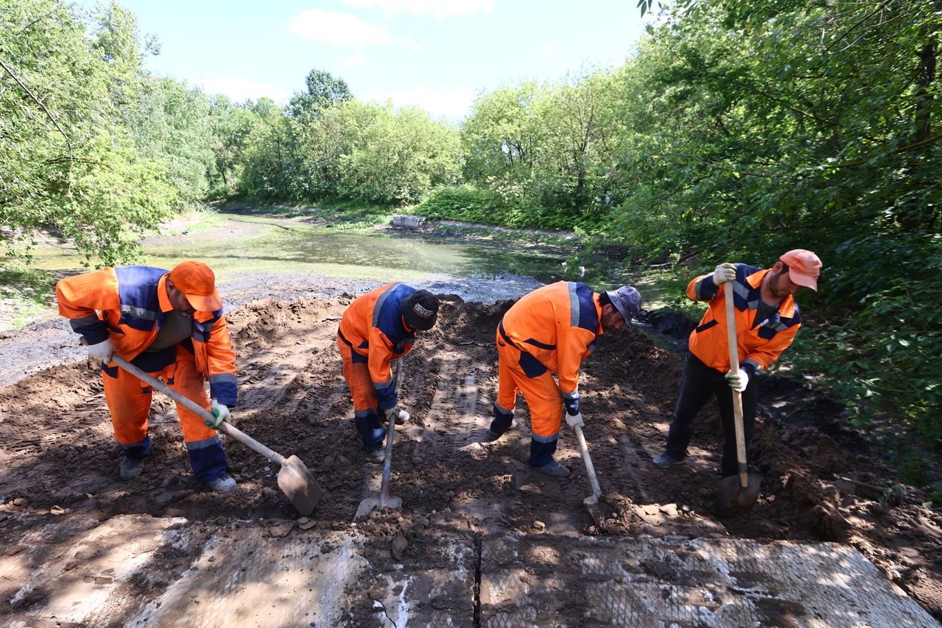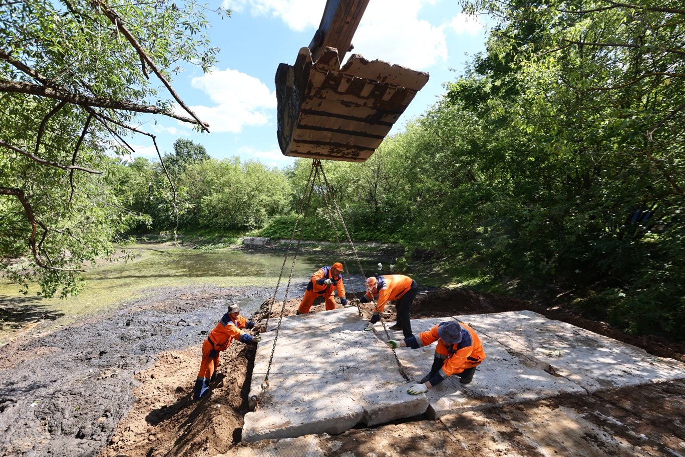 - Устройство береговых полос — откосные берега, ряжевая стенка из лиственницы;