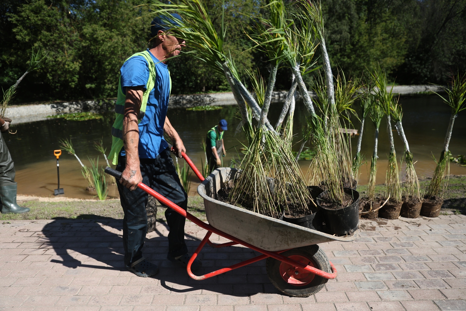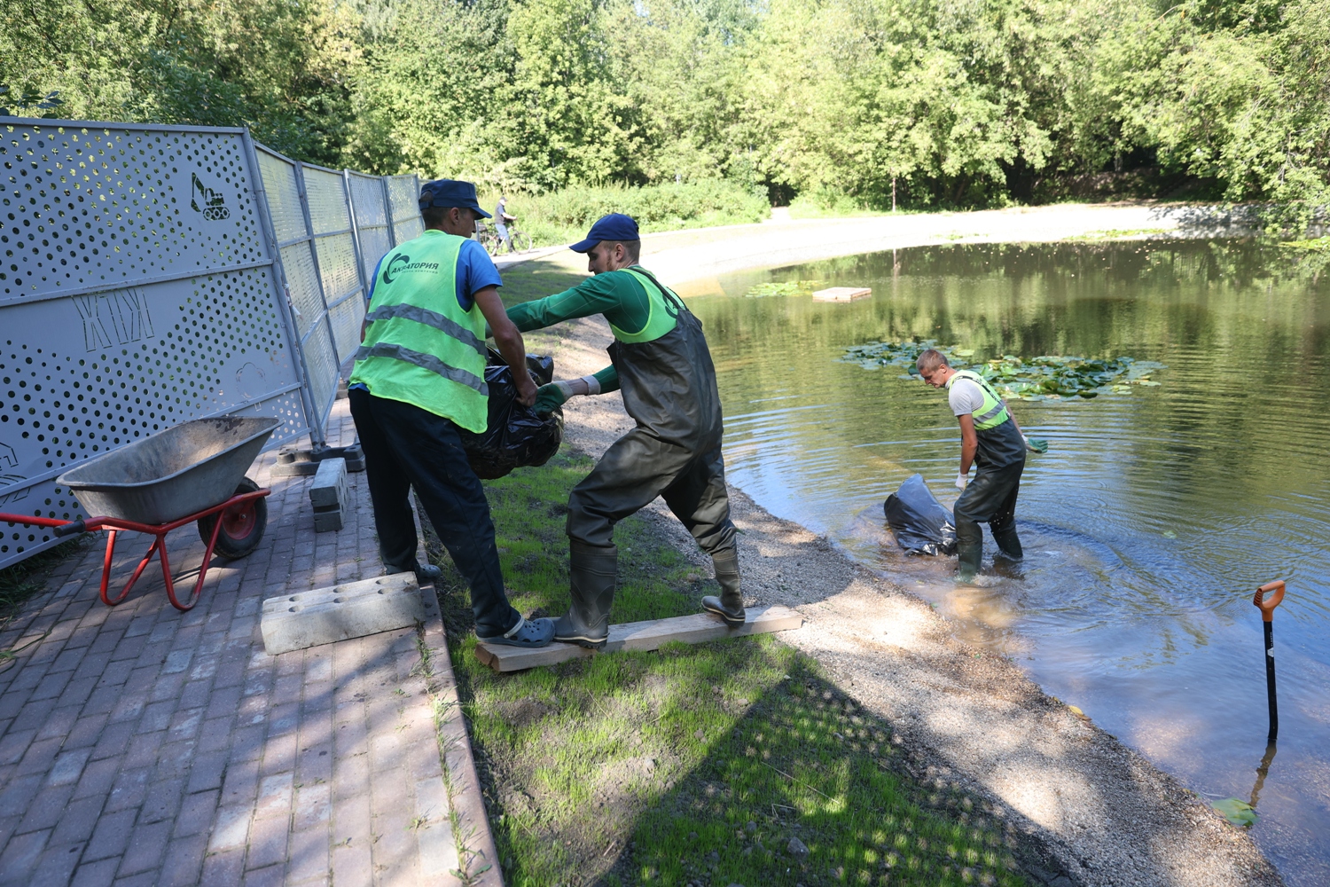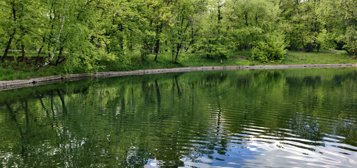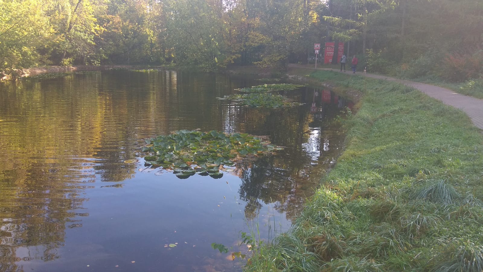 - Состав водной растительности — ирис, кубышка, сусак, тростник, рогоз, кувшинка.