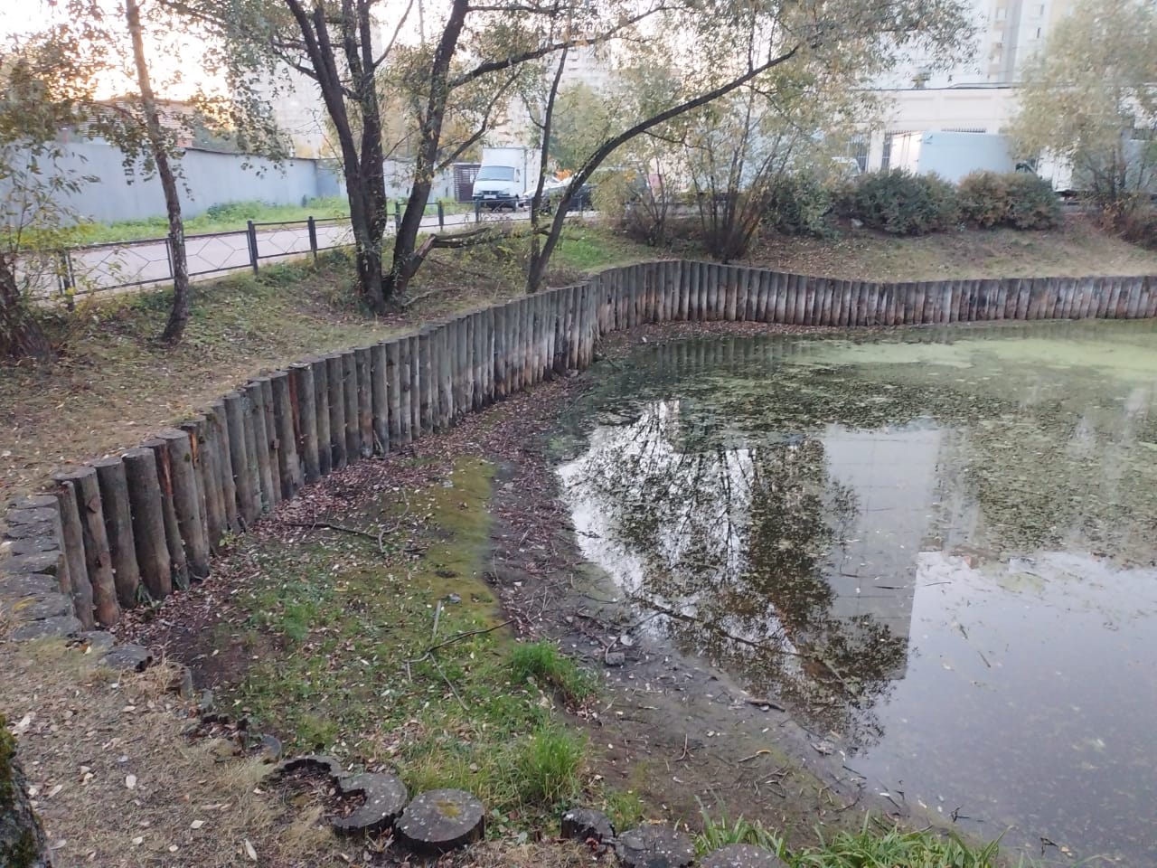 - Устройство береговых полос — ряжевая стенка из лиственницы;