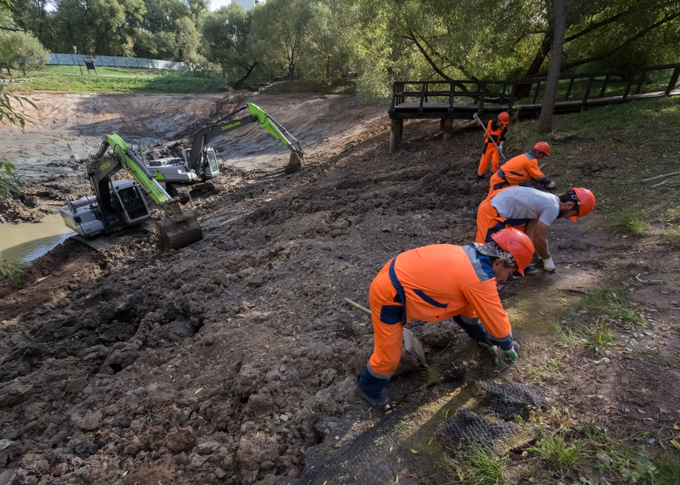 - Устройство береговых полос — естественный откос с отсыпкой гравием;